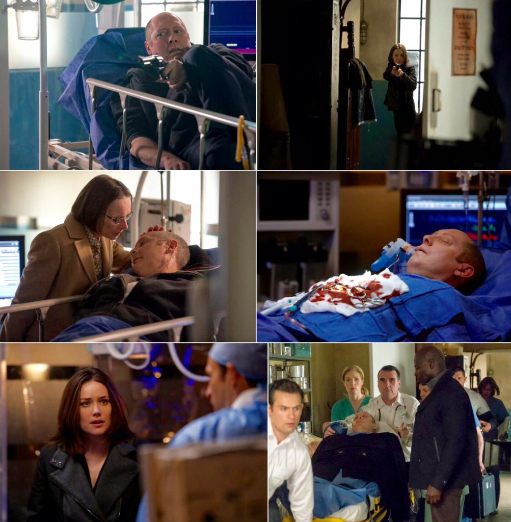 Liz: Reddington, stay still. He’s shot in the chest. I’m gonna lose him if I don’t get him to an ER.