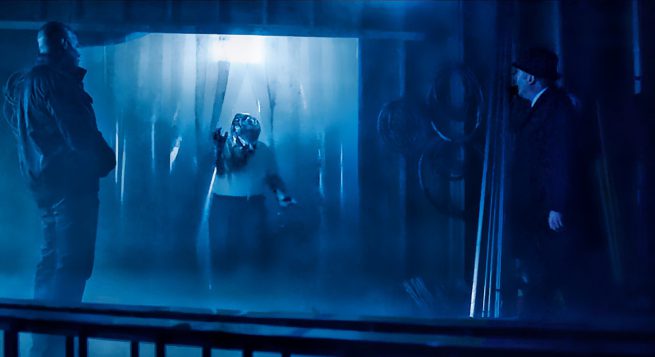 [ Campbell rushes out onto a loading dock. Walter Reardon is cuffed to a pole. Bankers boxes are stacked nearby ]