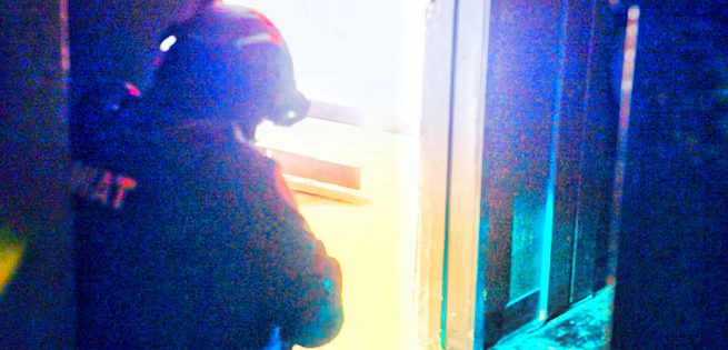 [ ♫ Heavy Metal music playing ] [ Men dressed in FBI uniforms, led by Sutton Ross, enter the offices of Veritable Robotics in Richmond VA ]