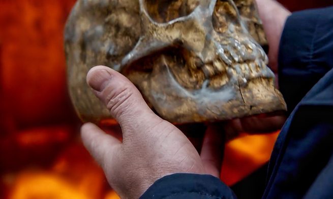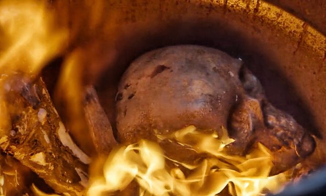 🐣 Red puts the skull from the duffel bag into the fire. [5:22 Sutton Ross] #TheBlacklist #NBCBlacklist https://twitter.com/BlacklistDCd/status/1080994962035097601/photo/1