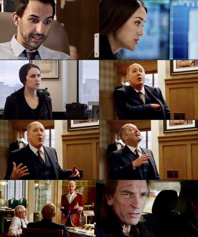 Speaking of time, Red and Liz are in the final sprint to recover the duffel bag containing a skeleton that Mr Kaplan intended to be delivered to Liz but Tom intercepted and was killed for his trouble. Both Red and Liz know who has the duffel bag, though Red knows the true identity of the man who has it (Sutton Ross) and Liz only has a pseudonym (Max Birmingham). US Marshall and dirty cop Ian Garvey, who killed Tom for the duffel bag to wield power over Red, managed to deliver it to Ross before he himself was killed by Liz in a showdown between Garvey and Red that got out of hand. Sutton Ross is an enemy of Red’s who Garvey had “disappeared” into Witness Protection and who Red had thought was dead.