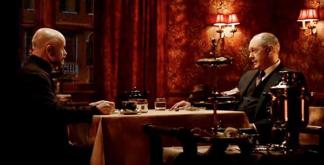 [ Red sits at a table across from a man referred to by Red and Dembe as their “Friend in the East” ]
