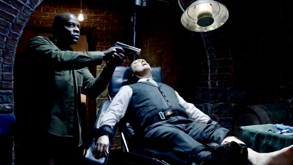 Red, in the meantime, went to the source of the ‘Rent-A-Cyranoid’ business to get the location of the individual who had acted as Liz’s Cyranoid, a Miss Collins. He put her through a game of Russian Roulette with Liz online, trying to get Liz to give up her location. The game was a ruse (all chambers of the pistol were empty), but it kept Liz online long enough for Dembe to trace the communications link. Liz was expecting as much, since, when Red and Dembe arrived at the site, she was gone, but there was a burner phone. The phone connected to Neville Townsend, who gleefully shared with Red the news of his new alliance with Liz.