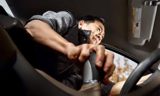 [ Agent Alina Park is in a car being driven by her husband, Peter ]
