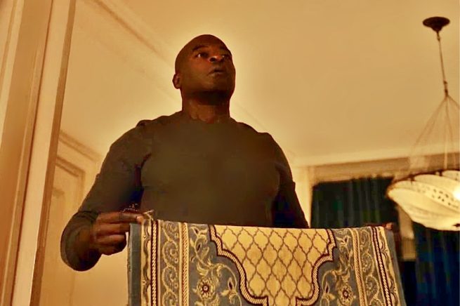 1) The header photo* is from an NBC studio still, stylized with help from an app named “Brushstrokes.” This precise image, though widely distributed, does not actually appear in the episode.