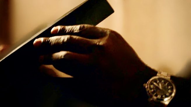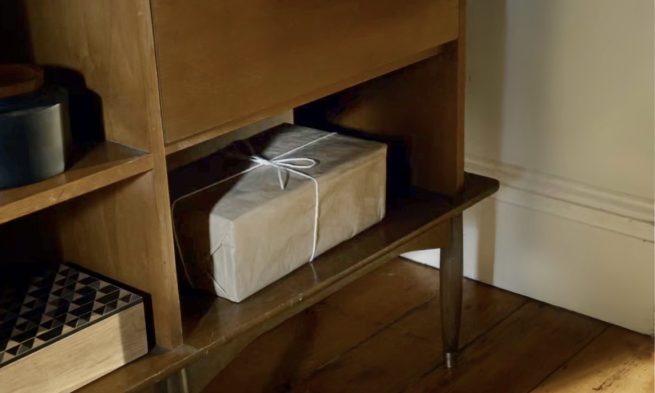 [ Tearfully, Dembe holds the wrapped box Red gave hims years earlier. He remembers the day: ]
