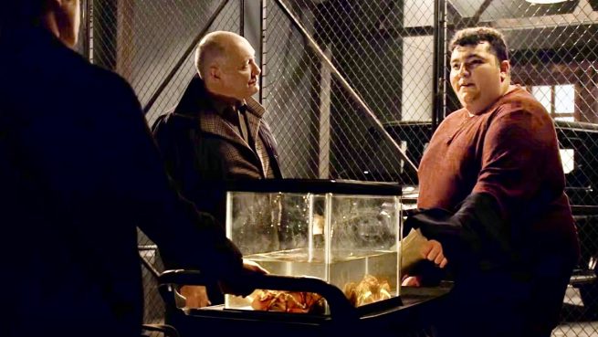● A bullet fired from Cooper’s gun was involved in the murder of Doug Koster, the neighbor with whom Cooper’s wife Charlene had an affair several years ago. ● Park may have cancer ~ she provided the clean urine sample for Ressler to use for a drug test required for him to be reinstated in the FBI. (He says he’s no longer using but told Park he wasn’t sure he’d been off drugs long enough for the test to be negative.) The test came back clean for drug use but with abnormal hormone levels. ● And Dembe and Red’s relationship has become as chilly as Red’s and Mierce’s appears to be cozy. Whatever went wrong between Dembe and Red has something to do with “Brasília” which Red says was “a tragedy” ~ likely referring to something that happened there (though “Berlin” turned out to be a person, so you never know).